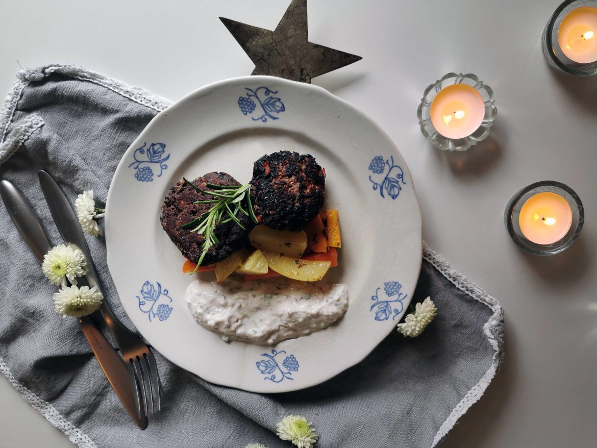 Häromdagen blev jag sugen på någon typ av pannbiff. Kanske var det altanbygget som tagit på krafterna och kroppen suktade efter kött och vegetariskt på samma gång. Så, vad gör man då? Jo, man lyssnar på kroppen och lagar både och.