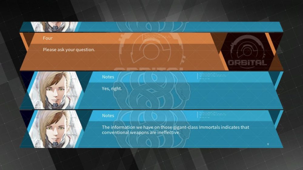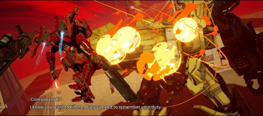 Problemet med att du måste uppgradera dina vapen är att till en början upplevs spelet så sjukt långsamt… Det tar sin lilla tid att få din robot att kicka röv ordentligt. Sen är det här ett av de mest pratiga spel jag någonsin spelat: det pratas i all oändlighet. Det är först prat innan uppdraget, sen är det oftast en mellansekvens – där de som är med på ditt uppdrag pratar, sen pratas det under hela uppdraget (och då inte om det som sker utan om andra saker) och slutligen pratas det efter uppdraget. Prat, prat, prat! Det blir till slut så att man stänger av öronen och då det faktiskt är info du måste ha så missar du den. Sen kan jag känna att spelmekaniken till slut blir det lite enahanda; att krossa fiender på löpande band. De tekniska begränsningarna känns också av: då du, till exempel, är i en stad så är den alltid övergiven och inga människor syns på gatorna.