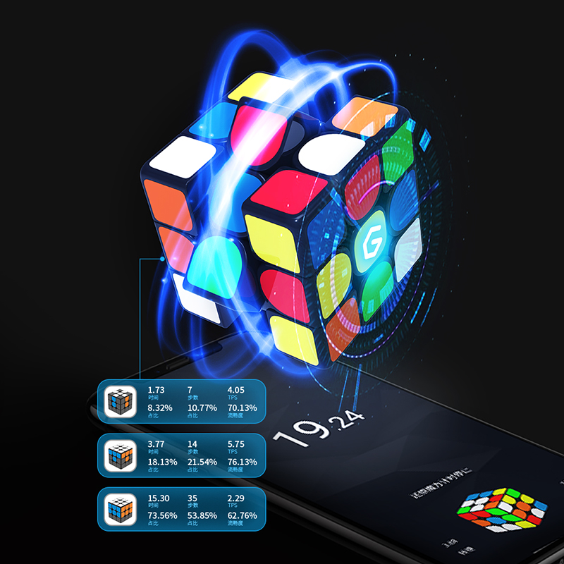 Här hittar du inlärningsprogram, tävlingar (som utmanar din snabbhet, ditt minne och din reaktionsförmåga samt betygsätter ditt resultat från A-E), online battles där du kan tävla mot andra runt om i världen, smart timer – som startar automatiskt när du börjar och stoppar när du är klar och som, förutom tid, även noterar antalet rotationer – och hjälpprogram som steg för steg vägleder dig till att pussla alla sidor rätt om du mot all förmodan inte skulle lyckas på egen hand. Du kan spara och förbättra dina resultat och på det sättet även tävla mot dig själv.
