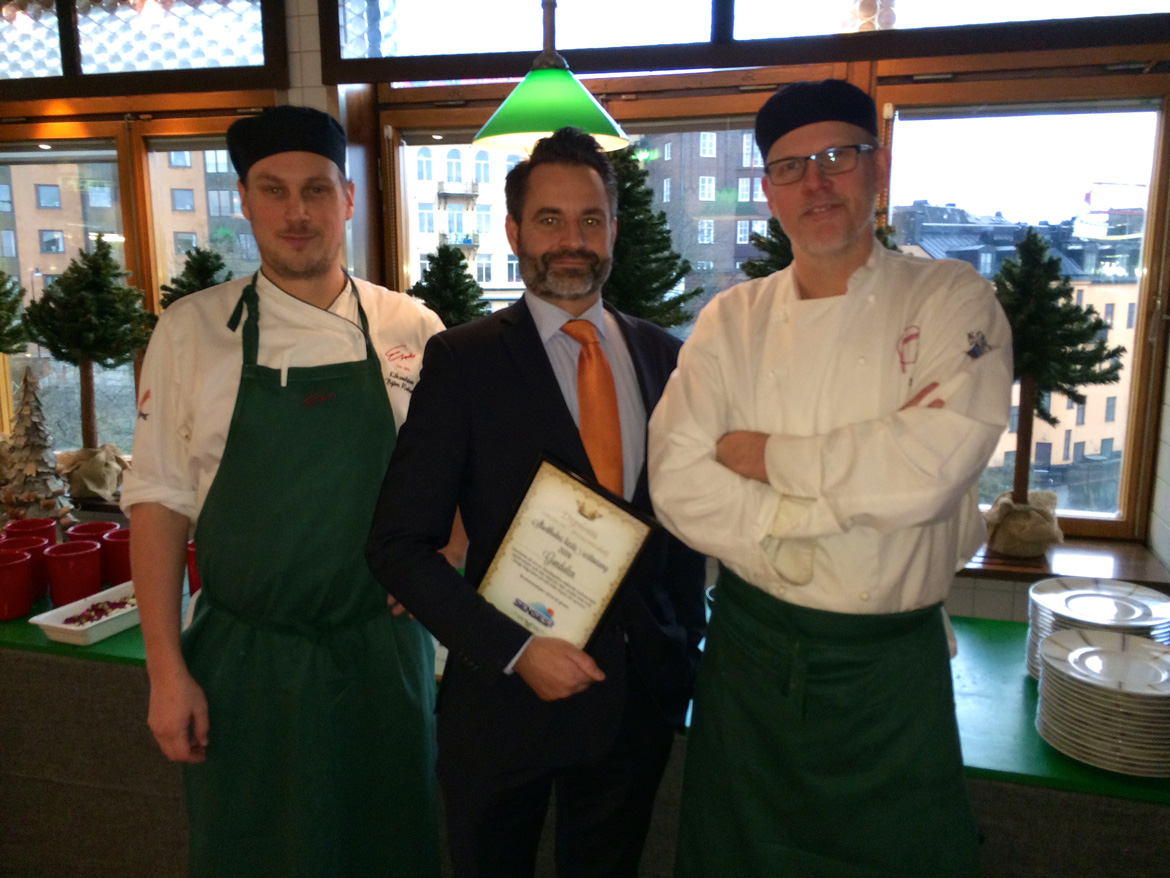 Glada brons-vinnare, från vänster: Gondolens Björn Wahlund (köksmästare), Ragnar Boman (restaurangchef) och Lennart Harlins (kökschef). Foto: senses.se