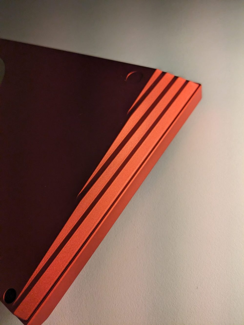 Som nämnt ovan kan man beställa delarna separat, som ett kit för att bygga ihop det själv eller så kan man betala för att få sin konfiguration färdigmonterad. Vi valde att låta Invintix montera ihop Drekiskip åt oss. Först fick vi fylla i ett formulär med ett trettiotal olika val för hur just vi ville ha vårt tangentbord. Vi ska inte ta upp alla val här men det rörde både enklare val såsom vilka switchar vi ville ha, till lite mer nitty gritty-detaljer såsom vilka tangenter som skulle ha vilken typ av stabilisator eller val som enbart påverkar tangentbordets akustik(!). Drekiskips baksida pryds av en fantastiskt vacker medaljong i metall inspirerad av klassisk vikingakonst.