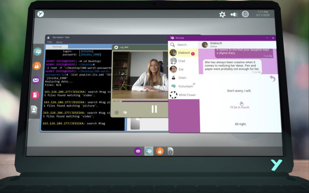 Sen öppnar jag den första av filmerna och mitt hjärta sjunker. Det är inte direkt den bästa skådespelerskan de har hittat. Det är ganska överdrivet och fånigt och om man som jag har valt att köra spelet på engelska så är hon dubbad… med tysk brytning. Snabbt klickar jag över till tyskt originalspråk och det blir något bättre. Det är mycket information att processa och när jag sedan kommer igång med att hacka filerna för att komma närmare inpå Jessikas liv så ökar spänningen.