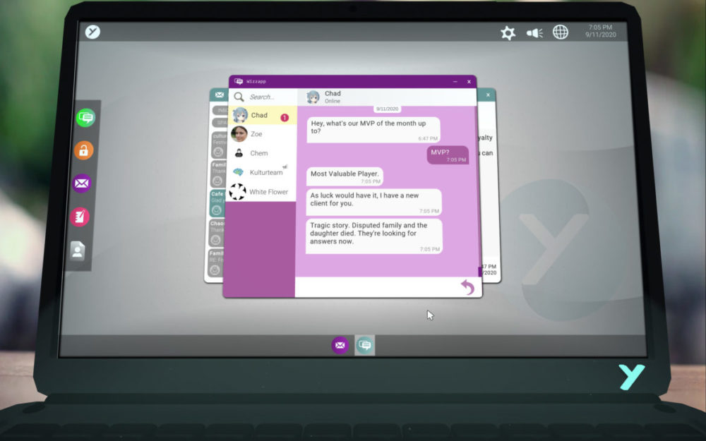 Efter en liten stund inser jag att det är så att lösenordet innebär att även skriva in ordet ”password” före siffrorna. Logiskt? Nu kommer jag in i alla fall. Okey. Vad har jag framför mig: jag har min mail, min chat, anteckningsblock och ett hacker-program. I chatten så får jag ett nytt meddelande. Klickar på svara och får upp tre svarsalternativ. Nu börjar spelet rulla på. Jag får uppdraget att börja leta i Jessikas digitala spår för att hitta orsaken till hennes självmord. Än så länge har allt varit ganska välgjort och coolt.