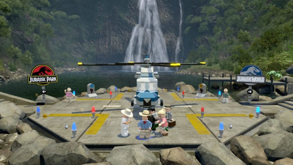 Jag har faktiskt spelat det tidigare, på Xbox One (spelet släpptes till de andra konsolerna redan 2015) och tyckte om det, minns jag. Så det var kul att stifta bekantskap med det igen. LEGO Jurassic World lanserades i samband med att filmen Jurassic World hade premiär och därmed var det fokus på den nya filmen, så jag vill erinra mig att jag blev förvånad när hela spelet istället började med att man får spela sig igenom den första Jurassic Park-filmen. De två första banorna bygger upp till att vi landar på Isla Nublar. Nu får vi ett val: antingen så fortsätter vi att spela de tre första filmerna eller så väljer vi att spela Jurassic World.