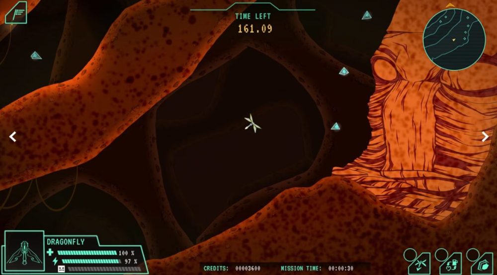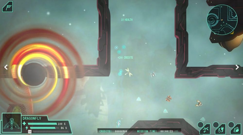 Kontrollerna är förblindande enkla, du styr din farkost genom att snurra den runt sin egen axel, sedan använder du dina booster-raketer för att flyga dit du vill. Det låter simpelt men det är allt annat än det. Redan tidigt så inser du att det här är inget spel som du kan sova dig igenom. Det gäller att hålla koll på bränslet och din sköld för om något av dessa försvinner så är du körd. Du har även möjlighet att uppgradera ditt skepp och skaffa olika fördelar inför nästa uppdrag. Det går även att välja olika piloter som har olika färdigheter. Därmed kan du spara bränsle genom att helt enkelt ha en försiktigare pilot men istället något långsammare.