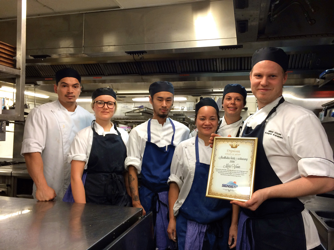 Köksmästarna på Miss Voon håller stolta upp senses.se:s utmärkelse för Stockholms Bästa Restaurang 2014. Foto: senses.se