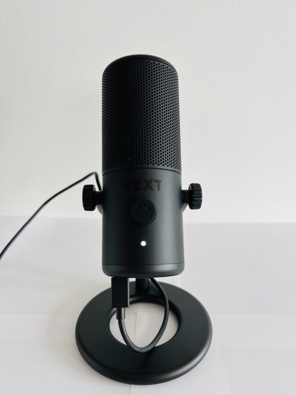 NZXT-mikrofonen är designad för gamers med användarvänlighet i fokus. Just att den är så gamervänlig märker man med funktioner som AUX-ingång för enkel inkoppling av hörlurar i mikrofonen. En annan toppenfunktion är att du enkelt kan justera ljudet med en vridbar knapp.
