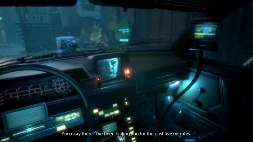 Spelet känns väldigt filmiskt och om du är sugen på att börja direkt så får du snällt vänta på en väldigt lång rulltext som berättar om världen du strax ska besöka. Efter ett tag är du på plats i din polisbil och redan i första anblick så ser vi referenserna till Blade Runner. Det finns något härligt retro med tekniken som används och hela upplägget i fråga om musik och ljud är väldigt bra. Rutger Hauer, som huvudperson och vår avatar känns coolt på ett, ovanligt udda sätt. Det är inte första gången som kända skådespelare lånar ut sina röster och utseenden till spel, men just med Rutger Hauer som The Observer gör att det hela tas till en ny nivå.
