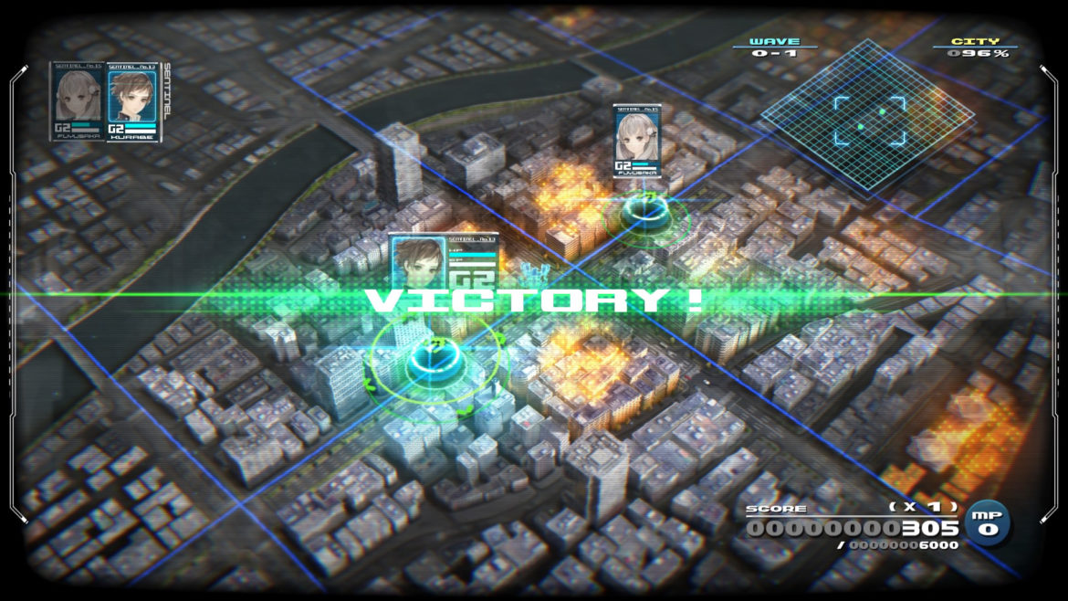 Spelet är uppdelat i två sektioner: den ena är den animerade-sektionen där vi får reda på all bakgrundshistoria och exposition och den andra delen är strategi-sektionen, som tyvärr saknar en del i genomförande tycker jag. Här finns inget av anime-känslan kvar utan det är en mer generisk vy över en stad och varelsen du slåss emot och din robot är endast symboler. Helt plötsligt så är det ett helt annat sorts spel och känslan av ett brädspel infinner sig plötsligt istället. Det är fortfarande dialog, men med ytterst simpla animationer. Det är även förvirrande till en början att hålla koll på alla detaljer inför de stundande striderna.