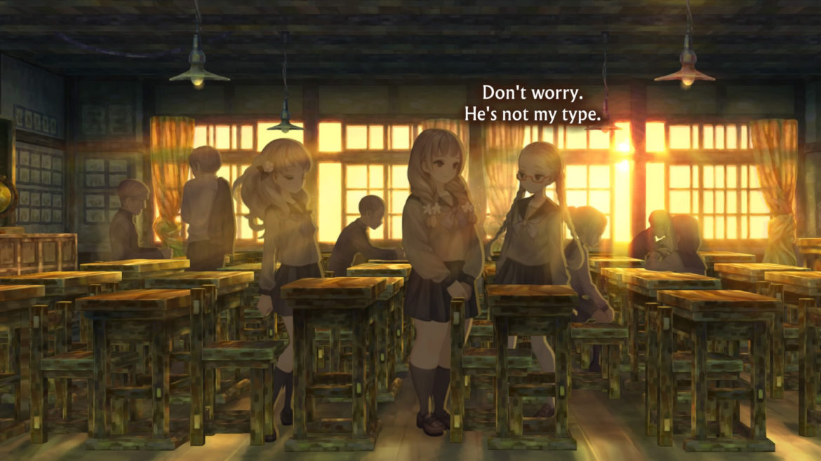 Det som störde mig mest var också – tyvärr – den ganska mossiga kvinnosynen. Det är de klassiska, japanska skolflickorna med korta kjolar och över-sexualiserade utseenden: skolsjuksköterskan har en gigantisk byst som ser ut som att den ska ploppa fram vilken sekund som helst. Spelet släpptes i Japan förra året och inte för 15 år sen, som man kanske skulle kunna tro.