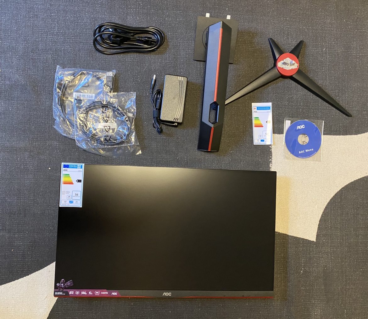 Skärmen är klassiskt stilren, med tunna kanter och en snygg kombo färger som känns gaming men inte skriker ut det. Röda detaljer på baksidan och foten piffar upp det klassiskt svarta. Foten är enkel att montera och ger monitorn en bra upphängning, som är lätt att anpassa och ställa in efter smak. De flesta tillbehör och kablar ingår.