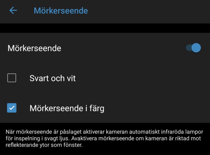 Hur är bildkvaliteten då? Vi monterade upp en kamera i en rätt mörk källare och lät vår mest suspekta medarbetare spela inbrottstjuv för att testa de olika lägena som finns. Det finns olika inställningar för mörkerseende, om man vill att den inbyggda lampan skall tändas, eller om den skall använda IR (då blir det svartvitt) eller om mörkerläget skall vara avslaget helt.