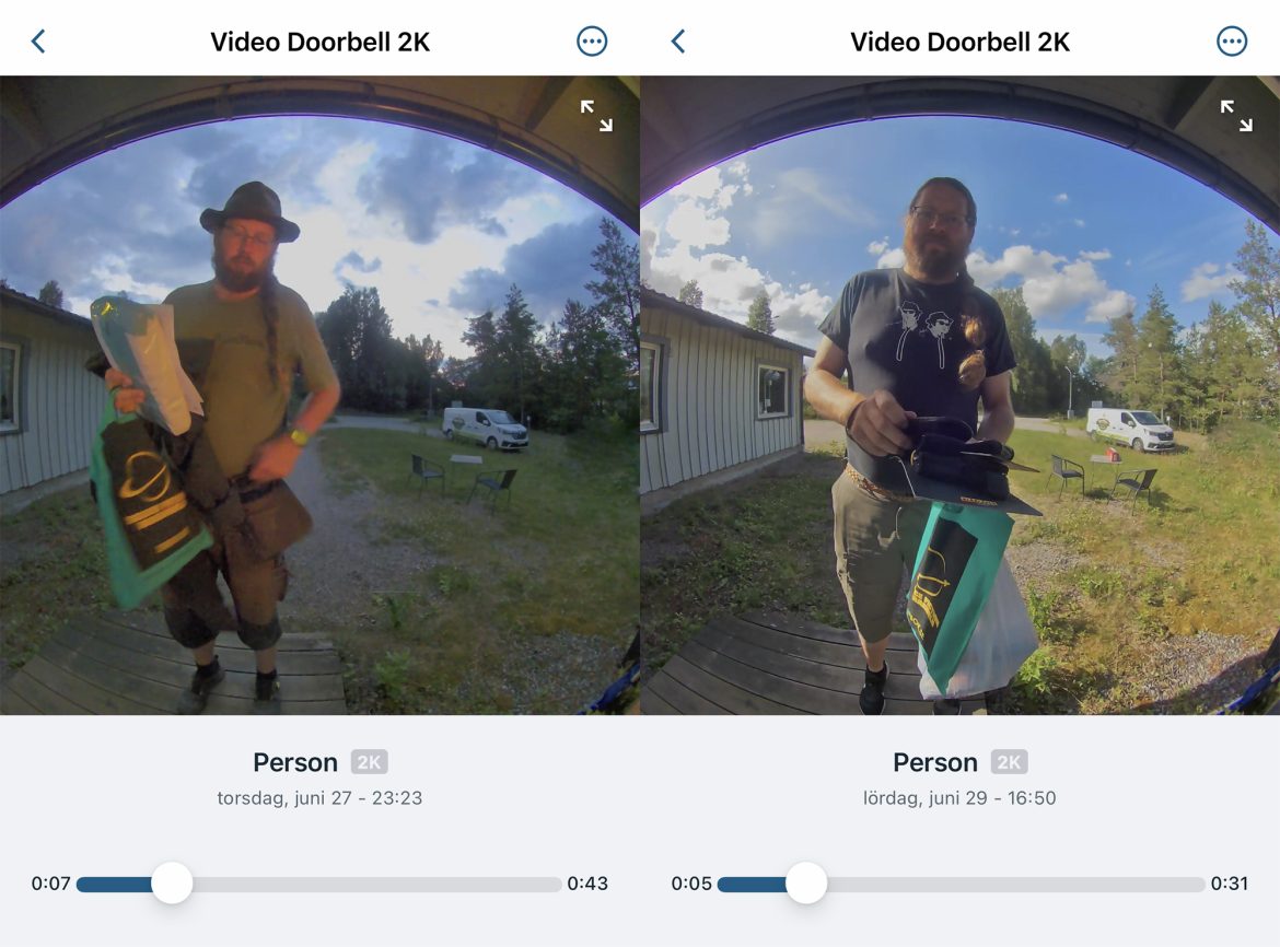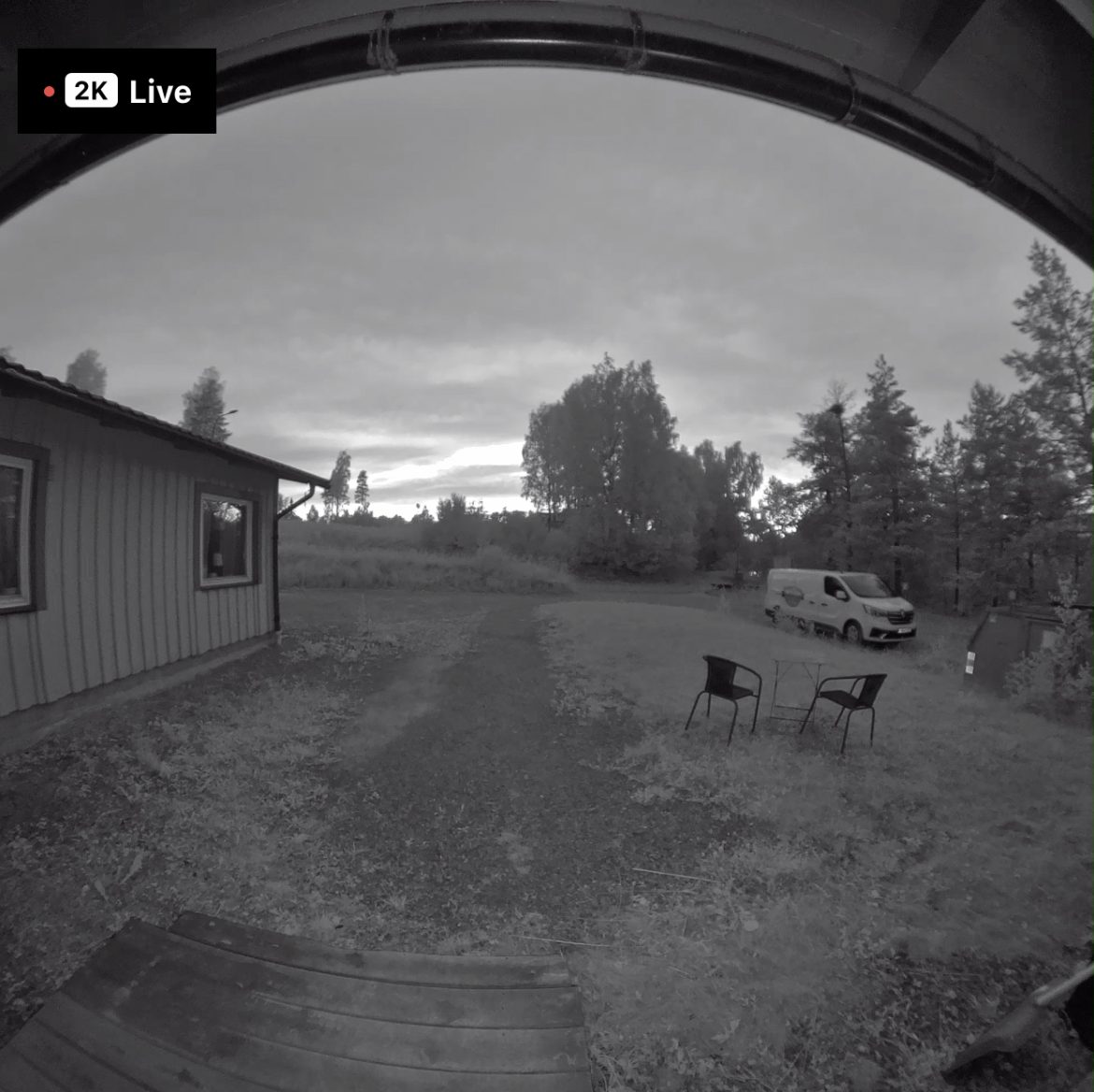 Bilden är helt klart mer högupplöst än förra versionen, och jag upplever även fler detaljer när den är i mörkerläge. Du kan zooma in i bilden på din telefon om det är någon detalj du vill titta mer noga på. Kameran håller även jämn och fin ljusstyrka från strålande sol till en mulen dag. Vidvinkeln är också förbättrad, och hela jag syns med mina 196 cm på ett avstånd av cirka 35 cm från kameran.