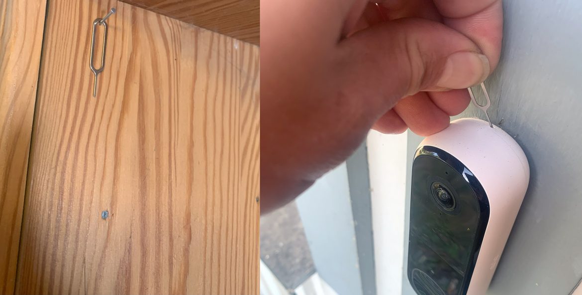 Ett tips är att hänga eller lägga nålen som du använder för att koppla bort enheten från bakstycket på en bra plats så att du lätt hittar den. Jag valde att hänga den på en spik på ett hemligt ställe.