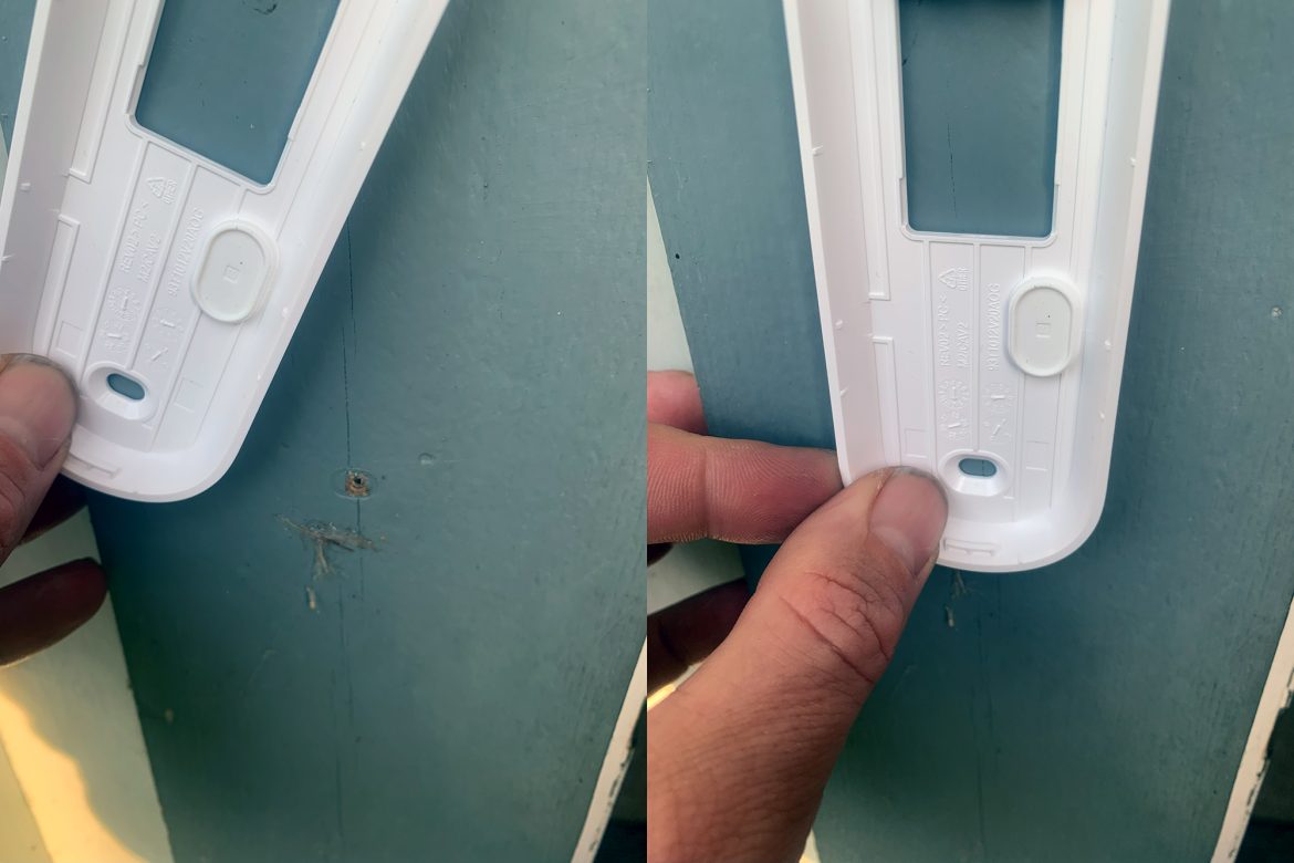 Medan jag väntar på att batteriet ska laddas klart monterar jag ned den gamla kameran som suttit sedan 2021. Det syns inte alls att den har suttit ute sommar som vinter i tre år, vilket också vittnar om den höga kvalitet som dessa produkter har. Först trodde jag att det skulle gå att använda samma bakstycke och därmed inte ens behöva plocka ned den gamla versionen, men Arlo: Video Doorbell 2k/HD är lite mindre än föregångaren, så det går inte. Det som är lite irriterande är att även om den är lite mindre så har de valt att sätta skruvhålen på andra ställen, så du måste göra nytt hål för att montera den. Det kanske är småsaker, men det hade varit lätt att tänka på.