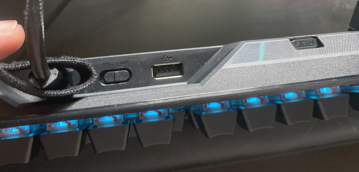 När det väl är ur kartongen så kan jag börja testet. Det som direkt är intressant är att Num-paden går att ta loss från tangentbordet och du kan välja att ha det inkopplad på vänster eller höger sida. Eller om du hellre vill minska ned storleken på ditt tangentbord kan du helt enkelt plocka bort Num-paden. Sen gillar jag verkligen att jag kan använda ROG Claymore II både trådat (med en snyggt flätat sladd som inte trasslar sig) och trådlöst. När Tangentbordet är fulladdat så räcker det inbyggda batteriet i upp till 47 timmar om om du har RGB-belysningen tänd (runt 60 utan). Du kan lätt se genom en indikator på tangentbordet hur mycket batteri du har kvar.