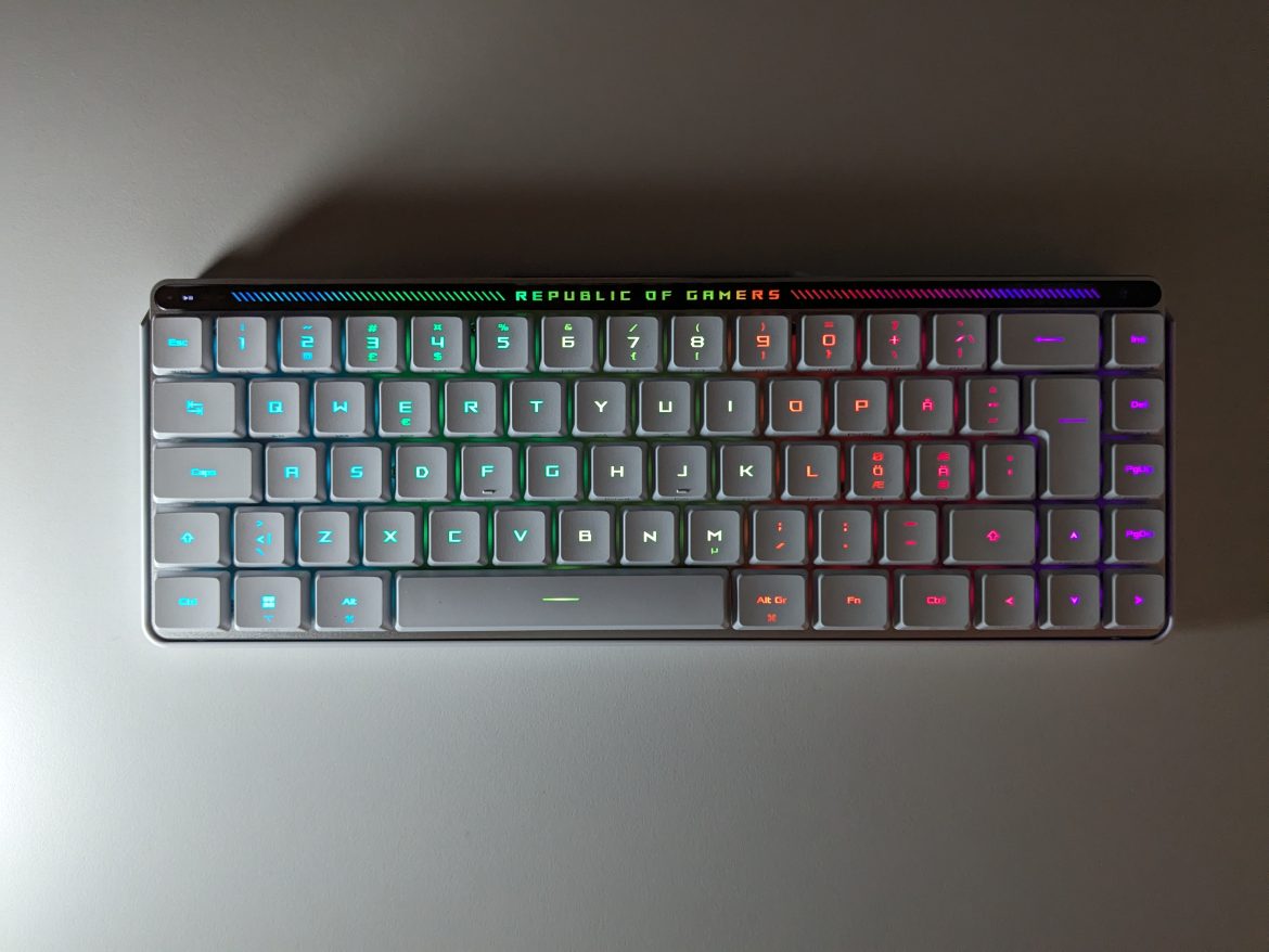 Det första man slås av när man packar upp Falchion RX Low Profile är hur liten den är. Den är märkbart mindre än andra tangentbord med samma knappuppsättning. Asus har lyckats packa in lika många tangenter som hos 65%-tangentborden i en 60%-kropp(!).