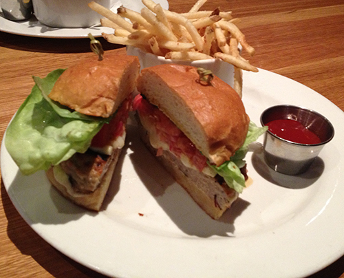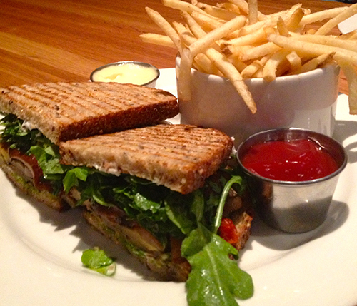 Westside Tavern har också flera vegetariska alternativ, vi gav oss på Veggie Paninin som är en portabella (svamp)-macka, med soltorkade tomater, ruccola och get-ost. Alldeles utmärkt för priset (119 kr) och med samma tillbehörs-deal som ovan.