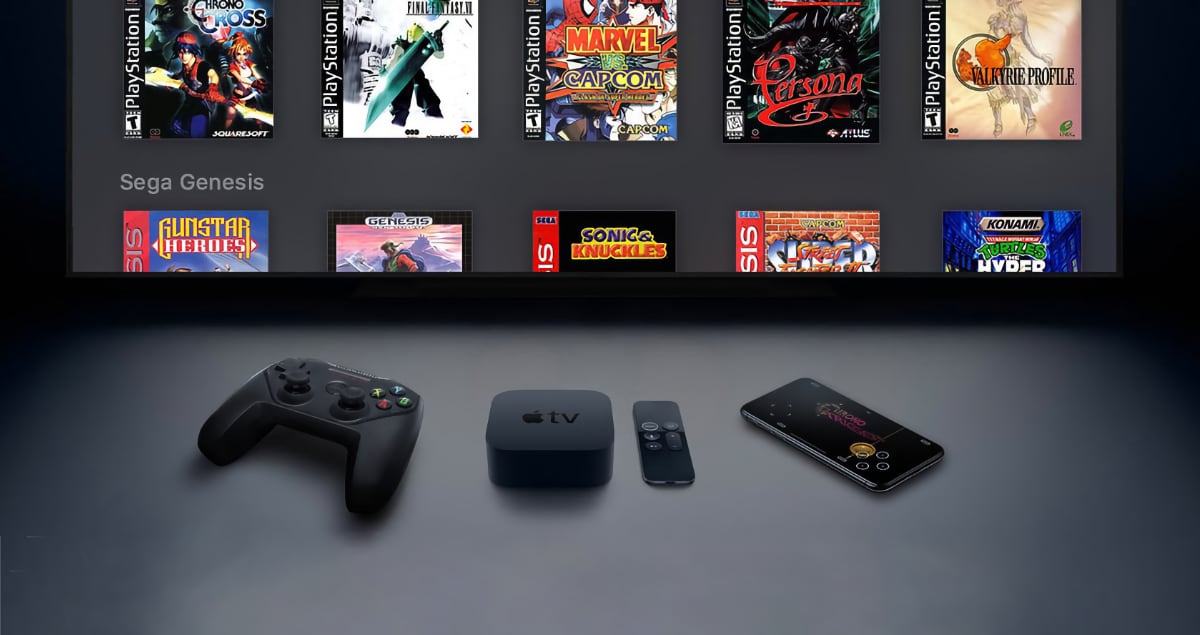 Appen kommer naturligtvis att stödja handkontroller för Apple TV, men även kontroller från Xbox, Playstation och Nintendo. Man lägger in spelen som ROM-filer, dessa finns ett stort utbud av – alltifrån helt lagliga som övergivits eller släppts fria av skaparna, till copyright-skyddade filer du inte lagligt ladda ned.