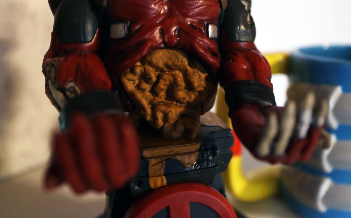 Deadpool har gått från att vara en obskyr figur, som jag knappt hade hört talas om, till att vara en av mina absoluta favorithjältar – så en Zombie Deadpool-hållare passar mig perfekt. Statyn är välgjord i stadig plast och är väldigt detaljerad. Den står fast på bordet och har därmed inga problem att hålla spelkontroller, telefoner och andra prylar som behöver en trygg famn att ligga i.