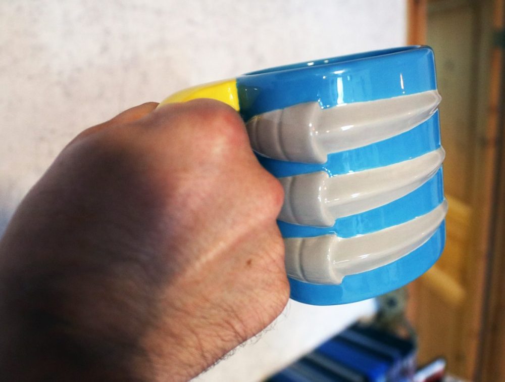 Wolverine-muggen är från den animerade TV-serien X-men 97 (finns på Disney+) och är utformad så att när du dricker ur den ser det ut som om du har klorna ute, á la Wolverine.