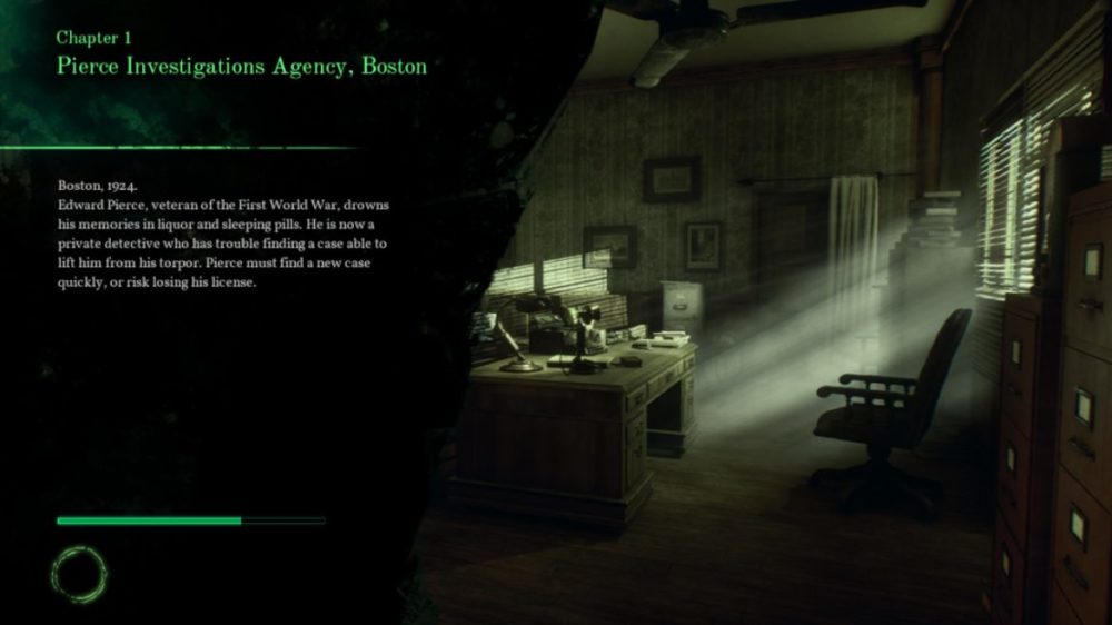 Sekunden som jag slår igång spelet så inser jag att det är nog lite för avancerat och stort för Nintendo Switch. Laddtiderna är rejält långsamma. Det var faktiskt så att jag trodde att spelet hade hängt sig och startade om konsolen, för att få samma resultat igen. Så tredje gången så väntade jag och då till slut så började spelet. Problemen tar inte slut där; redan i första scenen (då vi får uppdraget) så är det lite problem med ljudet. När karaktären är lite längre ifrån kameran så blir ljudet väldigt lågt och när han är pyttelite närmare så är det nästan för högt. Spelade med hörlurar och fick sänka snabbt för att inte få tinnitus… Sen har Call of Cthulhu ett klassiskt problem, som många spel har som blir portade till Nintendo Switch: Man har inte tagit i beaktning att skärmen är liten och därmed är all text-info pytte, pytteliten.