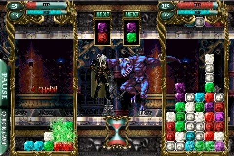 Nu har Konami kommit med sin amalgamerade idé att blanda Symphony of The Nights karta och föremåls-system med ett annat klassiskt spelkoncpet – Tetris. I Castlevania Puzzle – Encore of The Night, som funnits till Xbox 360 ett tag, och nu finns på iPhone och Android, så spelar du som Alucard – Draculas son och besegrar fiender genom death-matcher i Tetris! Feta kombos lönar sig stort och föremål du utrustar dig med samt magier du slungar, gör extra stor skada på fiender – som är alltifrån lätta zombies till smått blodtryckssprängande bossar såsom ex Succubus som kan frysa ditt spelbräde i 20 sekunder medan hon gör gigantisk skada på dig (frustrerande? Liiiite).