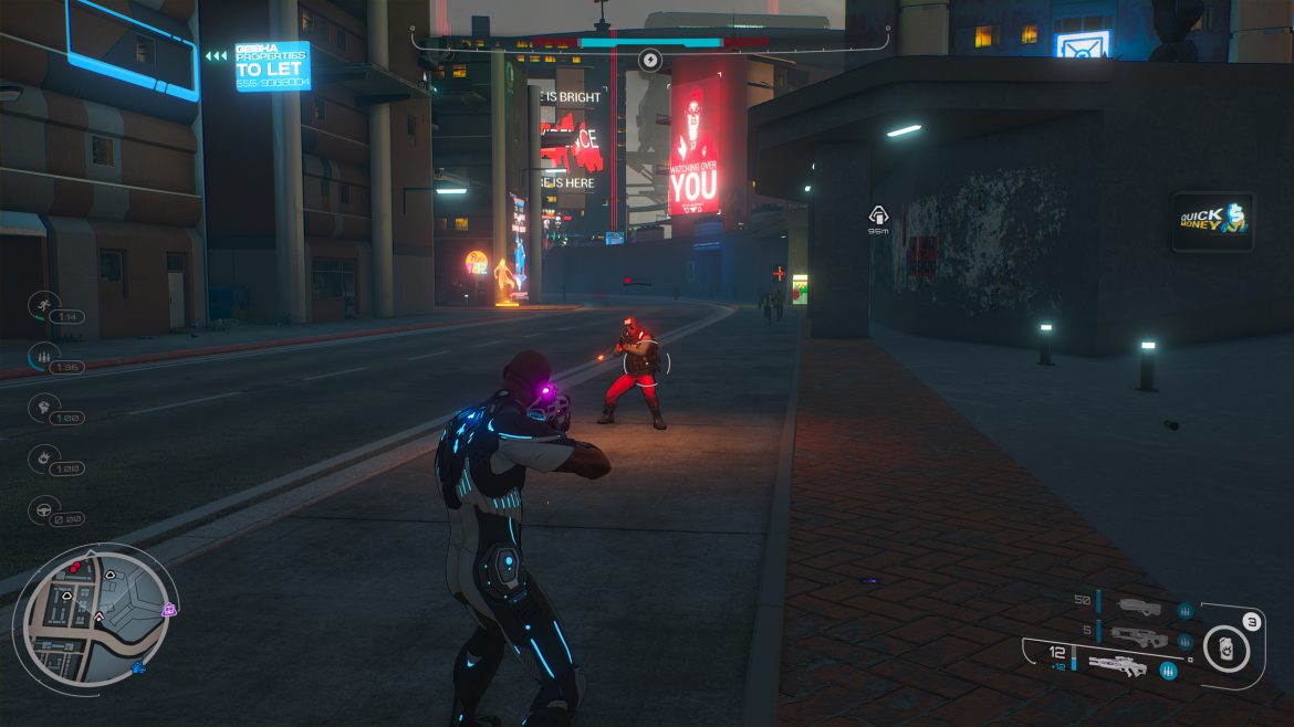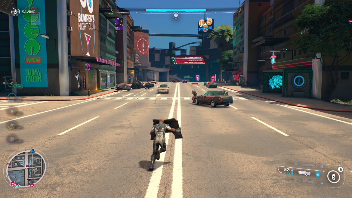 Hur är det att spela Crackdown 3 då? Sådär kan jag säga. För problemen slutar tyvärr inte med att det är tämligen fult och platt utan att spelmekaniken tidvis är ett skämt. Bilkörnings-delen är det enda som flyter på fint och spelet rör sig genom de stora banorna utan lagg – fast med tanke på hur lite info som det faktiskt finns i bilderna så skulle det vara riktigt katastrof om spelet skulle lagga också. Sen kommer vi till våra fiender, som rusar fram, ställer sig framför dig och börjar peppra. Du pepprar tillbaka på dem och de står kvar och tar skott efter skott tills de dör.