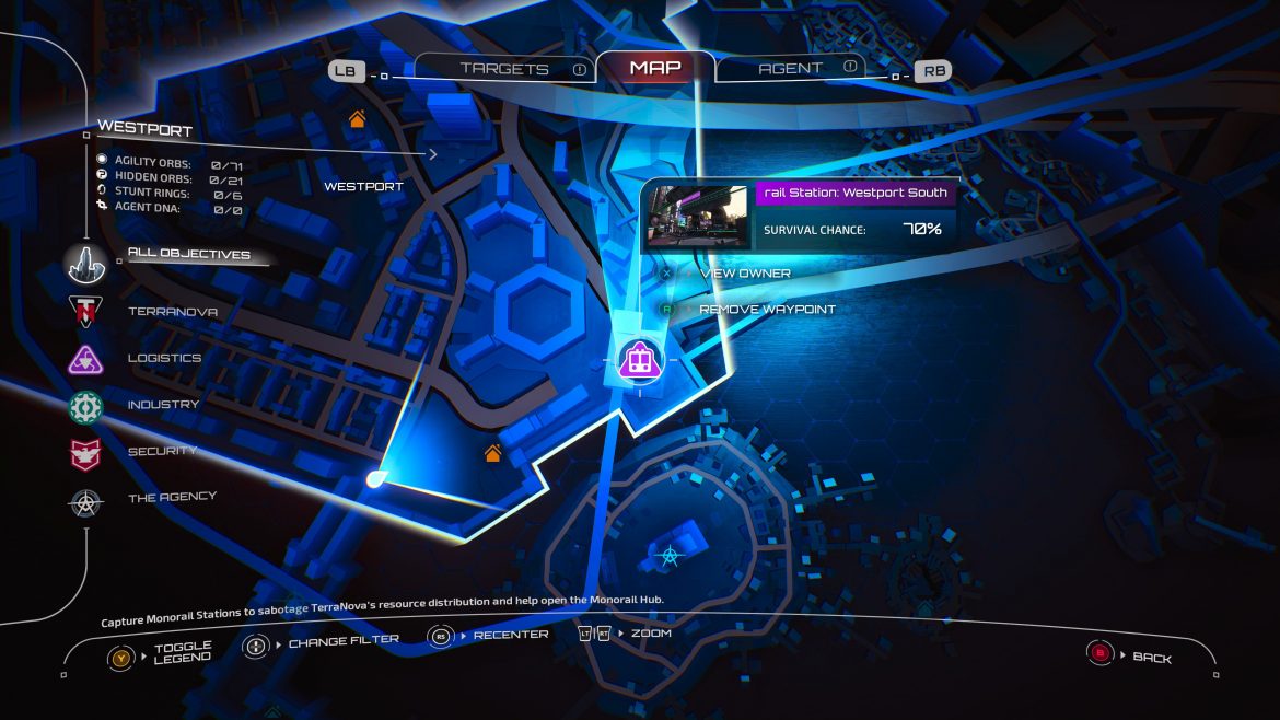 Storyn är tämligen tunn: en stad i händerna på olika grupperingar som håller folket som gisslan med olika sorters förtryck. Man spelar en agent som är inskickad för att skapa rättvisa igen och döda ledarna för de olika grupperingarna; hur du löser ditt uppdrag och vad du väljer att göra först är helt upp till dig. Du är en supersoldat så du kan hoppa och klättra hur högt som helst och dör du så skapar de en ny version av dig på ett litet kick. Du kan välja mellan sex stycken olika agenter.