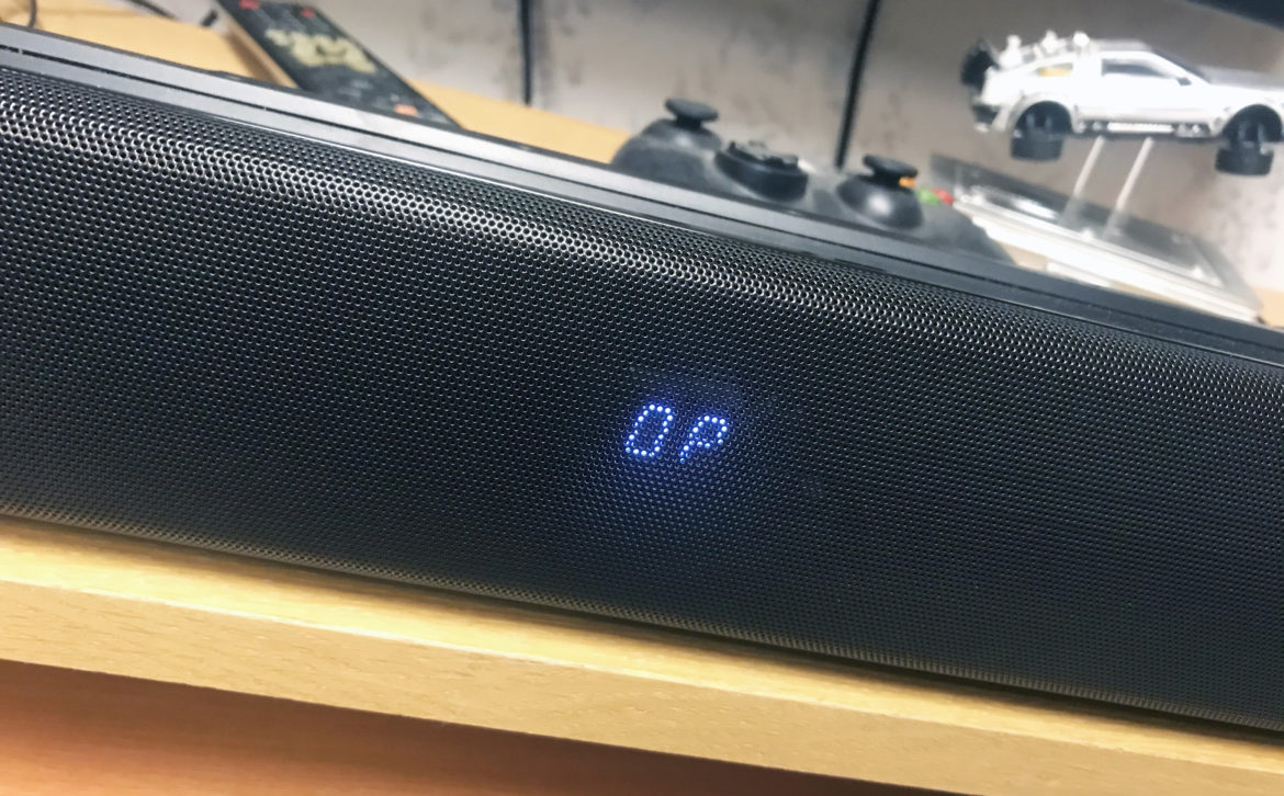 Du kan höja och sänka diskanten och basen – men jag gillar ju bas så jag drar upp den på max och som jag befarade så är inte basen särskilt kraftfull. Fast det blir faktiskt ändå riktigt bra biokänsla på ljudet. Det är centrerat och direkt och det fyller rummet på ett omslutande och behagligt sätt. Det påstås att det ska simulera surround, men det finns trots omslutandet ingen riktigt känsla av att något ljud kommer bakom mig utan det är framtungt helt och hållet (likt Yamahas YSP-2700). Ljudet går enbart att dra upp till ”35” och när det är på max blir det ändå inte särskilt högt. Detta är inte som på en vanlig förstärkare, där du kan dra upp nivåerna så du får samma resultat oavsett hur filmen är mixad. Men så är prislappen bara en tiondel och de inbyggda komponenterna därför inte jämförbara med en fullsize-förstärkare.