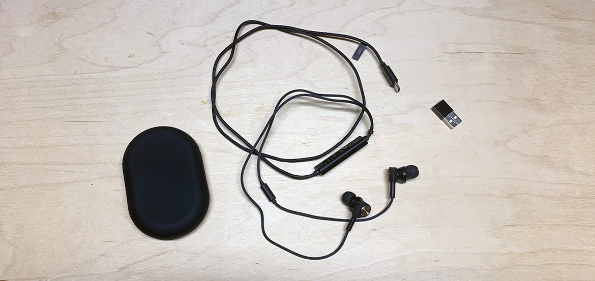 Det som ingår till SXFI TRIO från Creative är en en liten, smidig behållare i gummi som du kan ha dina lurar i och en adapter från USB-C till klassik USB A. That’s it. Jag har ju, som en stor del av befolkningen. en iPhone och den har som bekant inte USB-C (som alla Android har) utan Apples egen anslutning Lightning. Det finns ingen sådan adapter i lådan. Så jag går snabbt in på nätet och besäller hem en USB-C till Lightning-adapter. Så i väntan på att kunna testa lurarna till min telefon så kopplar jag in dem till datorn…