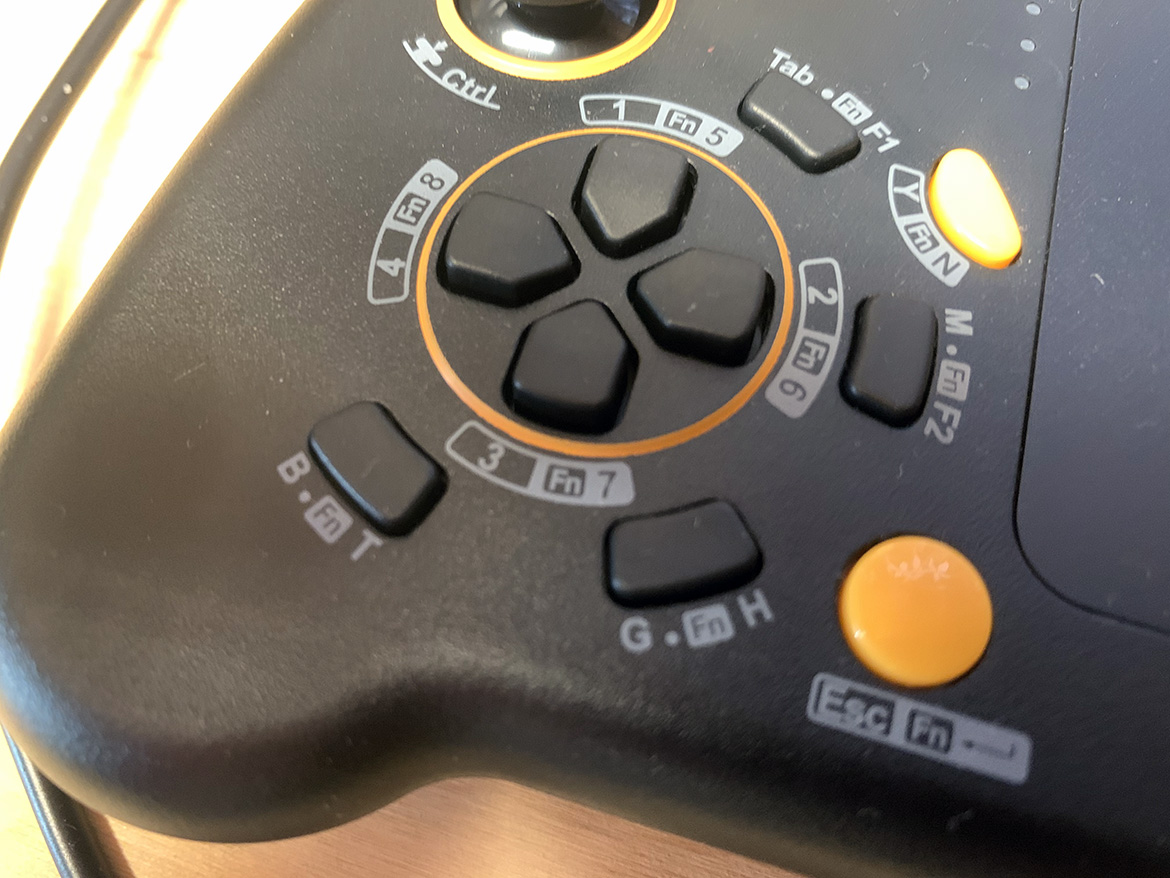 Nu gäller det bara att bekanta sig med DarkWalker ShotPad. Det är som sagt inga problem att nå knapparna men det är ju också för att jag har ganska stora händer… Sen är det till en början inte helt lätt att minnas var alla olika knappar sitter. Varje knapp är uppmärkt så det går att läsa sig till det. Sen har vissa knappar dubbelfunktioner och då måste du hålla in Fn (Function) knappen för att du ska komma åt dem.
