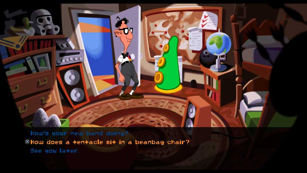 Det är nu nästan tre år sedan vi med sorg konstaterade att LucasArts officiellt gått i graven (efter att Disney köpt hela George Lucas underhållnings-imperium för fyra miljarder dollar). Men bra spel dör aldrig och kort efter det sorgliga beskedet så kom ändå glada nyheter om att klassiska LucasArts-äventyr skulle komma ut i nya, upphottade versioner till nutidens största format. Nyligen fick vi återuppleva Grim Fandango i HD och kort efter det är nästa guldklimp här. Day of the Tentacle är Tim Schafer och Dave Grossmans klassiska uppföljare till Maniac Mansion, ett av de första grafikäventyren att använda SCUMM-systemet (ett äventyrsgränssnitt med verb och inventarier). DOTT släpptes på Amiga 1993 och var då ett av de första spelen som faktiskt såg ut och kändes som en interaktiv, tecknad film (i bästa Chuck Jones-stil, ni vet han med Road Runner och alla korta Warner Bros-klassiker?). Senare kom det som ”talkie”-version, som det hette då, på CD-ROM till PC med utmärkt röstskådespeleri.