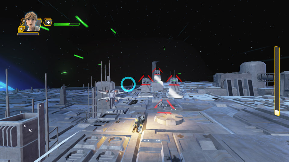 Om vi börjar med det nya play setet – Rise against the Empire – som kommer med kultfigurerna Luke och Leia Skywalker och utspelar sig i princip kring femte och sjätte Star Wars-filmerna, Empire Strikes Back (Rymdimperiet slår tillbaka) och Return of the Jedi (Jedins Återkomst). Play sets har länge varit Infinitys stora behållning för oss, icke-Minecraft-byggargenerationen och det kan inte bli så mycket häftigare än Star Wars, världens kanske bästa mytologi. Rise of The Empire behåller alla sköna inslag från förra play setet (Twilight of the Republic), med ikoniska platser och minnesvärda scener från filmen som man nu får spela. En av höjdpunkterna denna gång är när man får flyga sin X-Wing genom Dödsstjärnan, delta i intensiva dog fights och slutligen träffa exakt rätt med torpederna och spränga den. Gåshud!