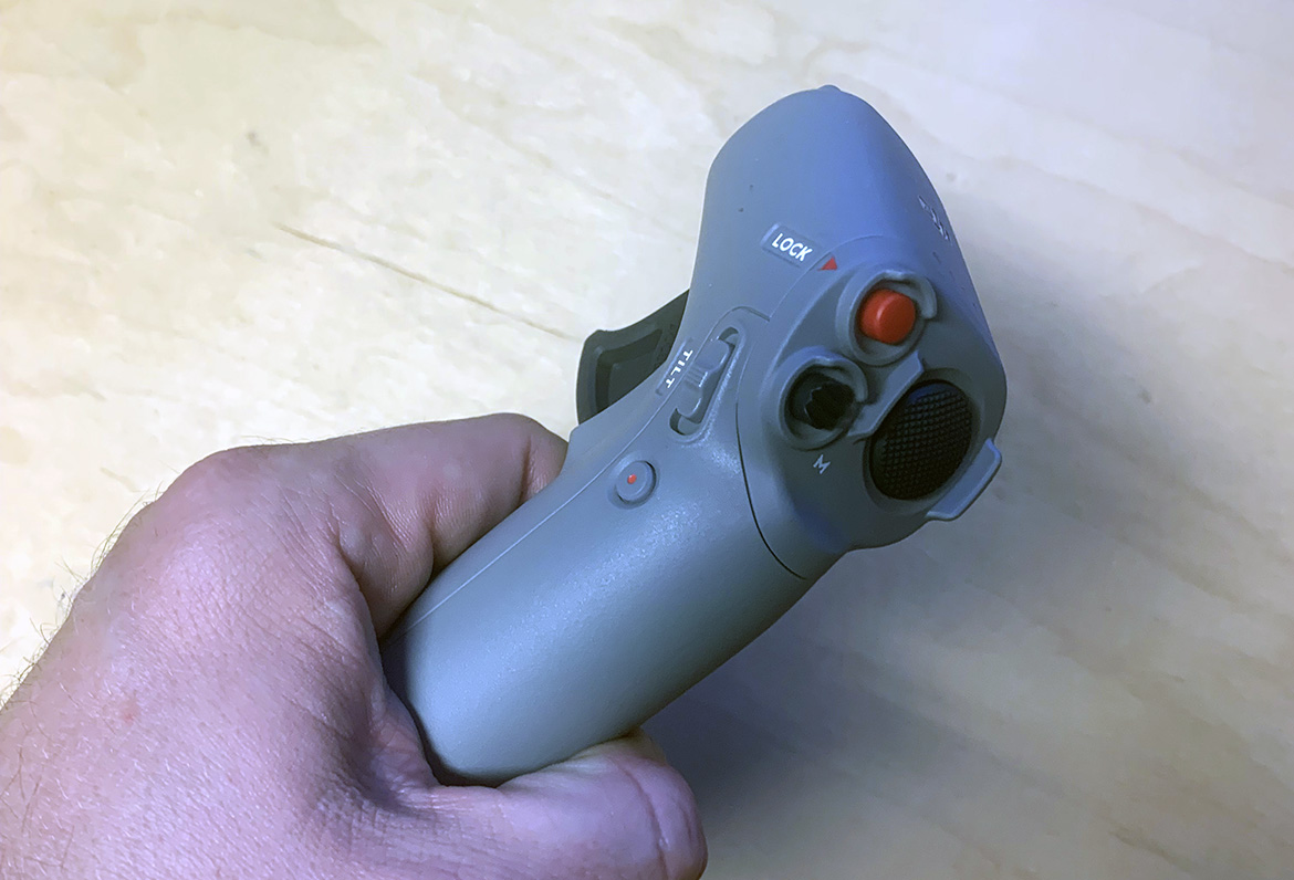 Handkontrollen har ett inbyggt gyro som gör att du endast behöver tilta handen upp och ned för att åka uppåt eller nedåt eller vrida handen vänster eller höger för att flyga dito. Det ger en enorm frihetskänsla men lite mer om det lite längre fram. Handkontrollen är fint gjord, men i jämförelse med de andra komponenterna så känns den något plastig. Den ligger bra i handen och det är inga som helst problem att nå alla knapparna. Handkontrollen behöver också laddas och till skillnad mot glasögonen så har denna ett inbyggt batteri.