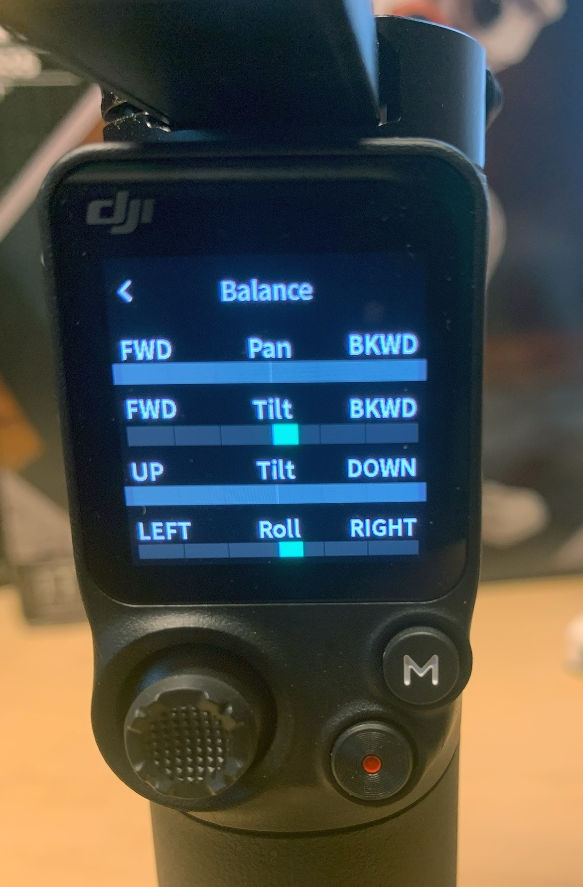 Jag börjar med att koppla på min Canon 750D som inte är en spegel-lös systemkamera men då den är långt under vikt begränsningen så funkar det bra. Det finns smidiga tutorials hur du enklast väger in din kamera. Något som jag verkligen uppskattar med DJI RS3 Mini är att den känner av om någon axel inte riktigt är invägd och meddelar det i displayen.