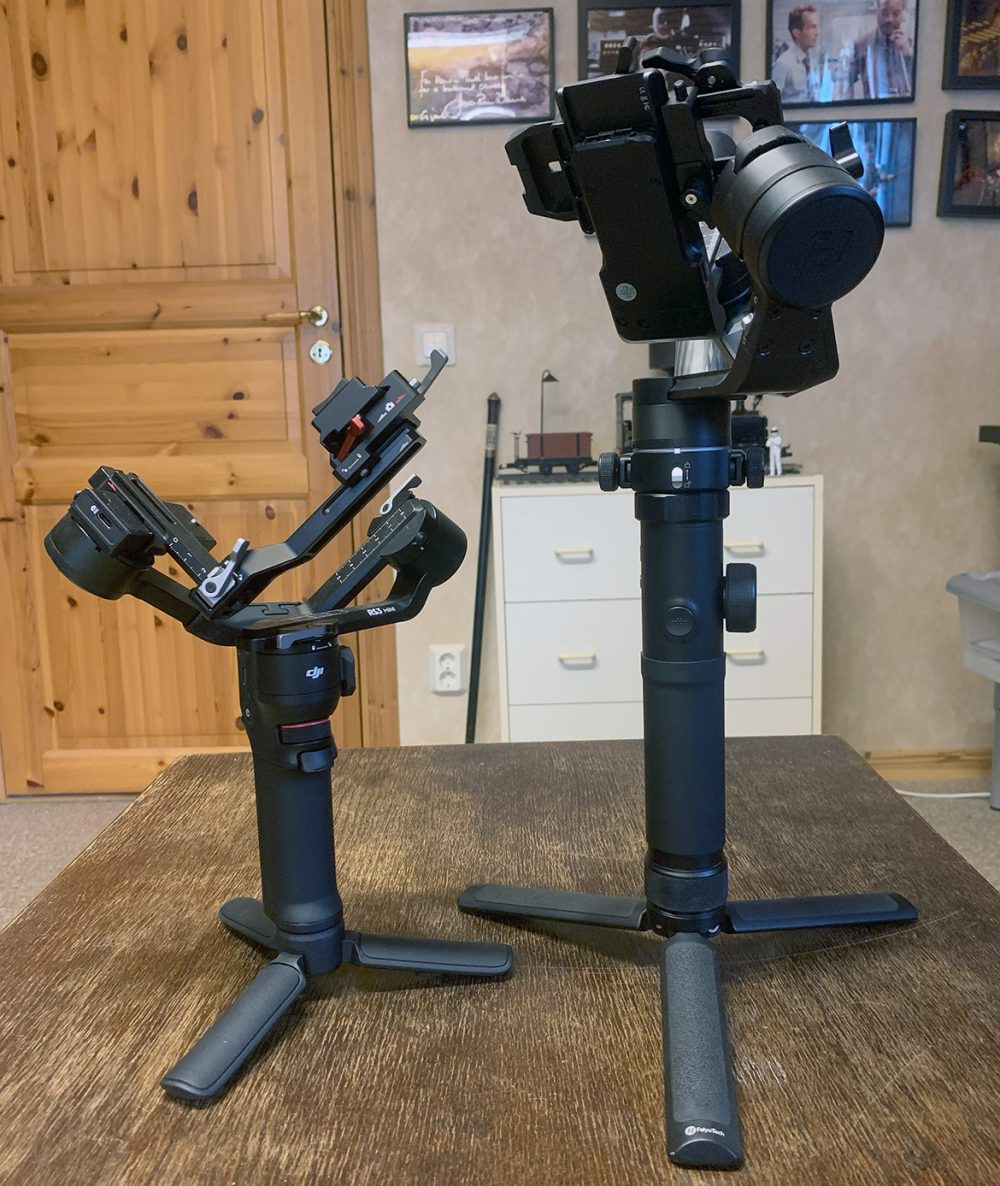 Redan när jag öppnar kartongen och plockar ur RS3 Mini så slås jag direkt av hur liten och smidig den är. Jag har inte RS3 versionen att jämföra med så jag ställde den bredvid FeiyuTech AK4500 gimbalen som är mer i normalstorlek.
