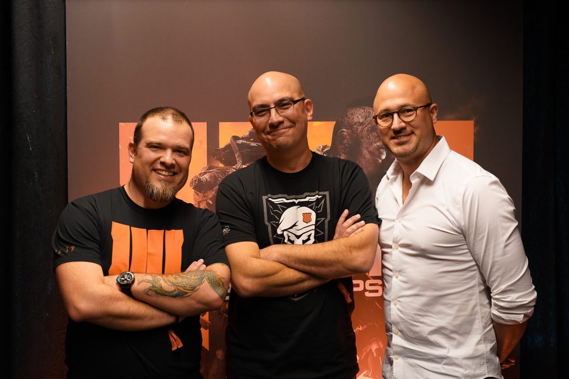 Thomas Wilson (Beenox), Jonathan Moses (Senior Prod Treyarch) och John Rafacz (Head of Comms). Foto (c) Activision