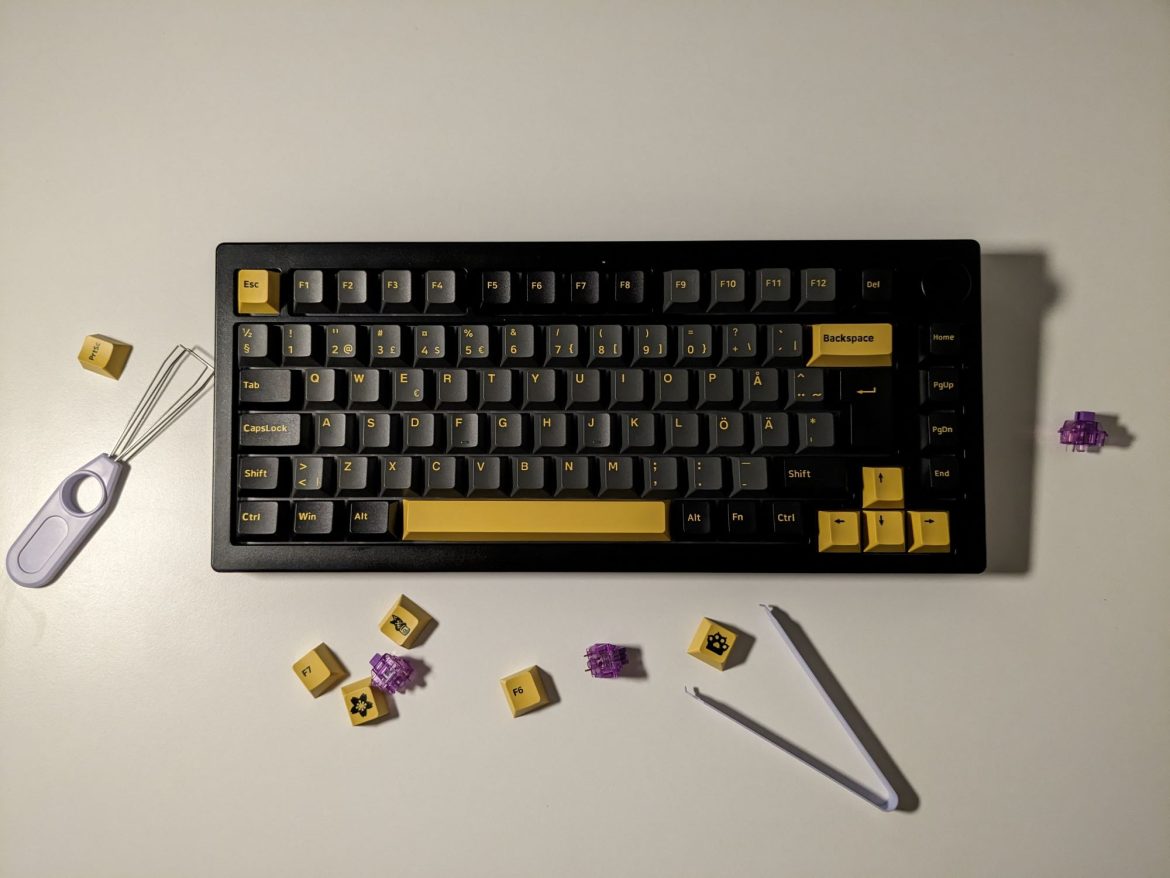 The package includes the keyboard, a USB-C cable, keycap and switch pullers, five spare switches, and a selection of yellow accent keycaps. This is a generous offering for the price point. The included tools and extra switches proved particularly useful during testing. We discovered one switch to be non-functional. We were able to replace the defective switch with a spare in under 20 seconds without interrupting our gaming session. Another switch exhibited a double-registration issue. While it’s unfortunate that two switches were faulty out of the box, the ease of replacement mitigates the inconvenience compared to initiating a warranty claim.