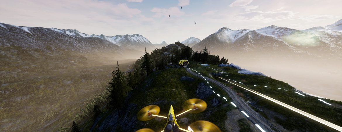 The game supports online multiplayer with various tournament and time-attack modes, accommodating up to 30 simultaneous participants. A diverse selection of 27 courses allows players to pilot drones across virtual representations of locations in China, Italy, and Switzerland, among others.