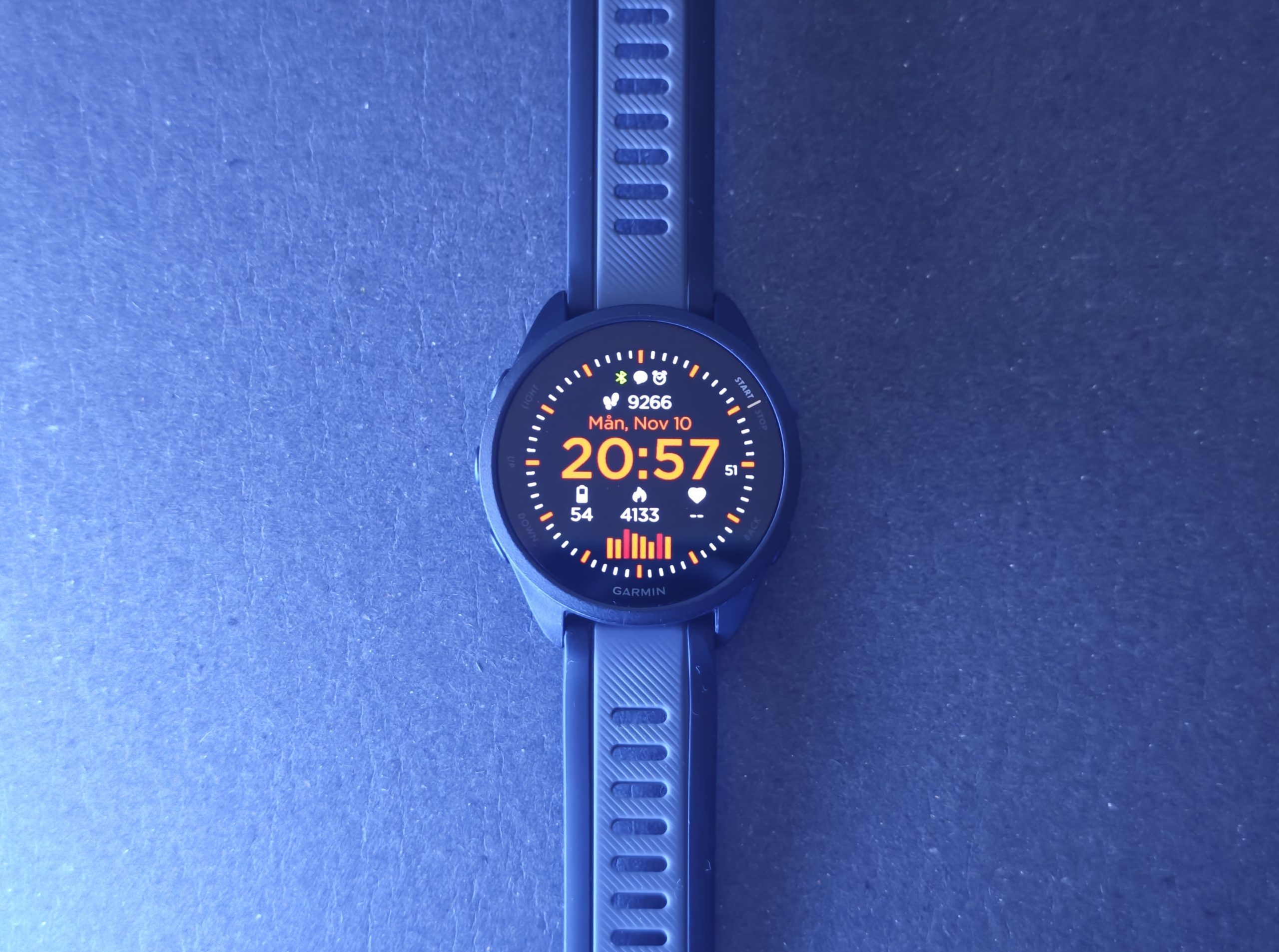 The weight is a mere 39 grams, which, combined with the soft rubber strap, makes it comfortable and easy to forget it’s on your wrist. Garmin runs its own operating system and is not a smartwatch in the traditional sense—meaning no access to Google Play or the App Store. However, it is simultaneously much more like a smartwatch than, for example, the Suunto Run, offering far more options for watch faces and various apps.
