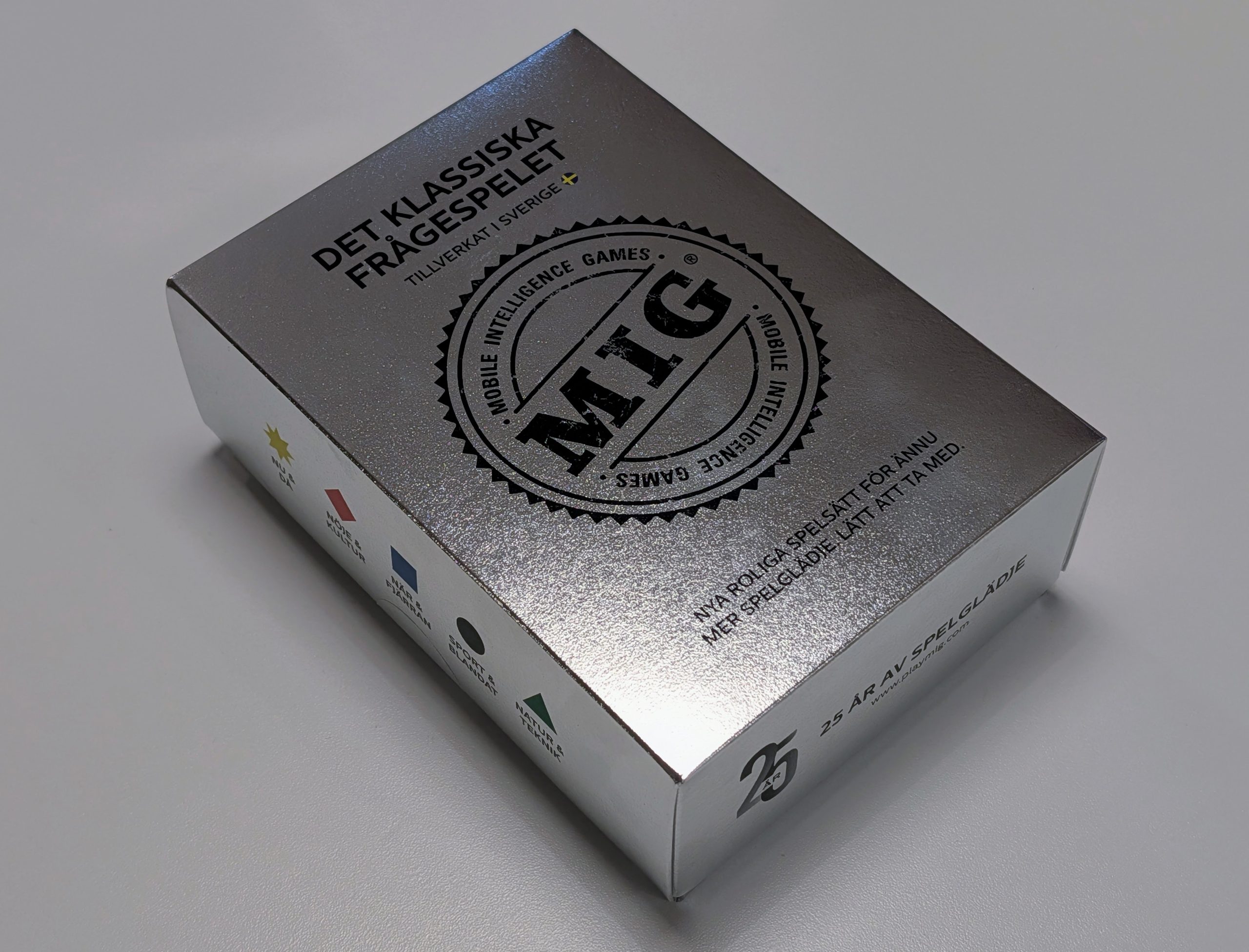 MIG, or Mobile Intelligence Game, celebrates 25 years. For a quarter of a century, the Swedish company PlayMIG has enriched countless car journeys and rainy cabin evenings with its compact quiz games. We recently reviewed their new family-friendly release, MIG 0-10, but now we turn our attention to the anniversary edition, namely MIG Silver.