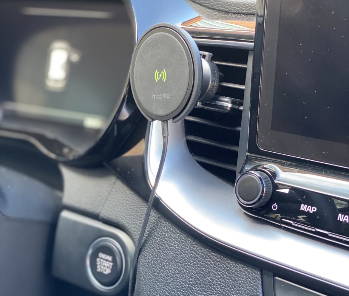 This summer, we evaluated mophie‘s new snap/snap+ series of chargers and accessories during extensive road testing. The product line includes wireless charging solutions that utilize a combined phone holder for in-car mounting via the ventilation grille (snap+ wireless vent mount). Also included are snap adapters, metal rings designed to attach to your iPhone case, providing magnetic alignment with the charging plate and enabling MagSafe fast charging (15W charging requires iPhone 12 or later).
