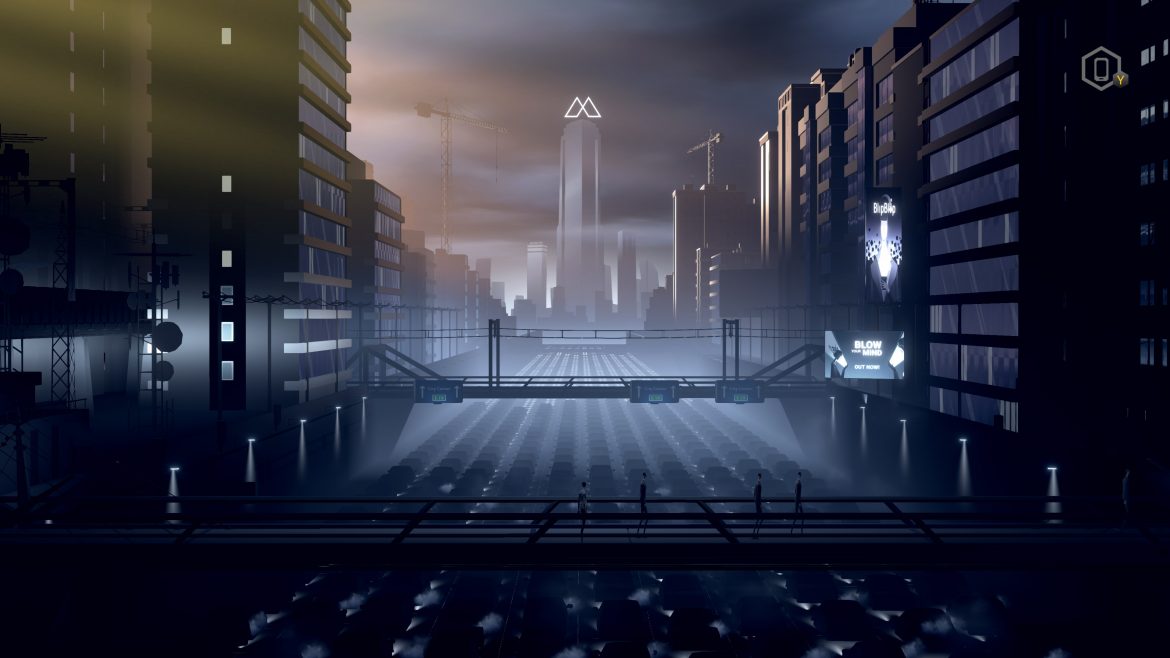 You awaken from a dream in a spartan apartment, check your phone to find a few messages, and then play a session of Blip Blop before listlessly brushing your teeth. The day unfolds in shades of gray. You passively follow the routine to your predictably monotonous job. The core question: what happens if you deviate from the established path?