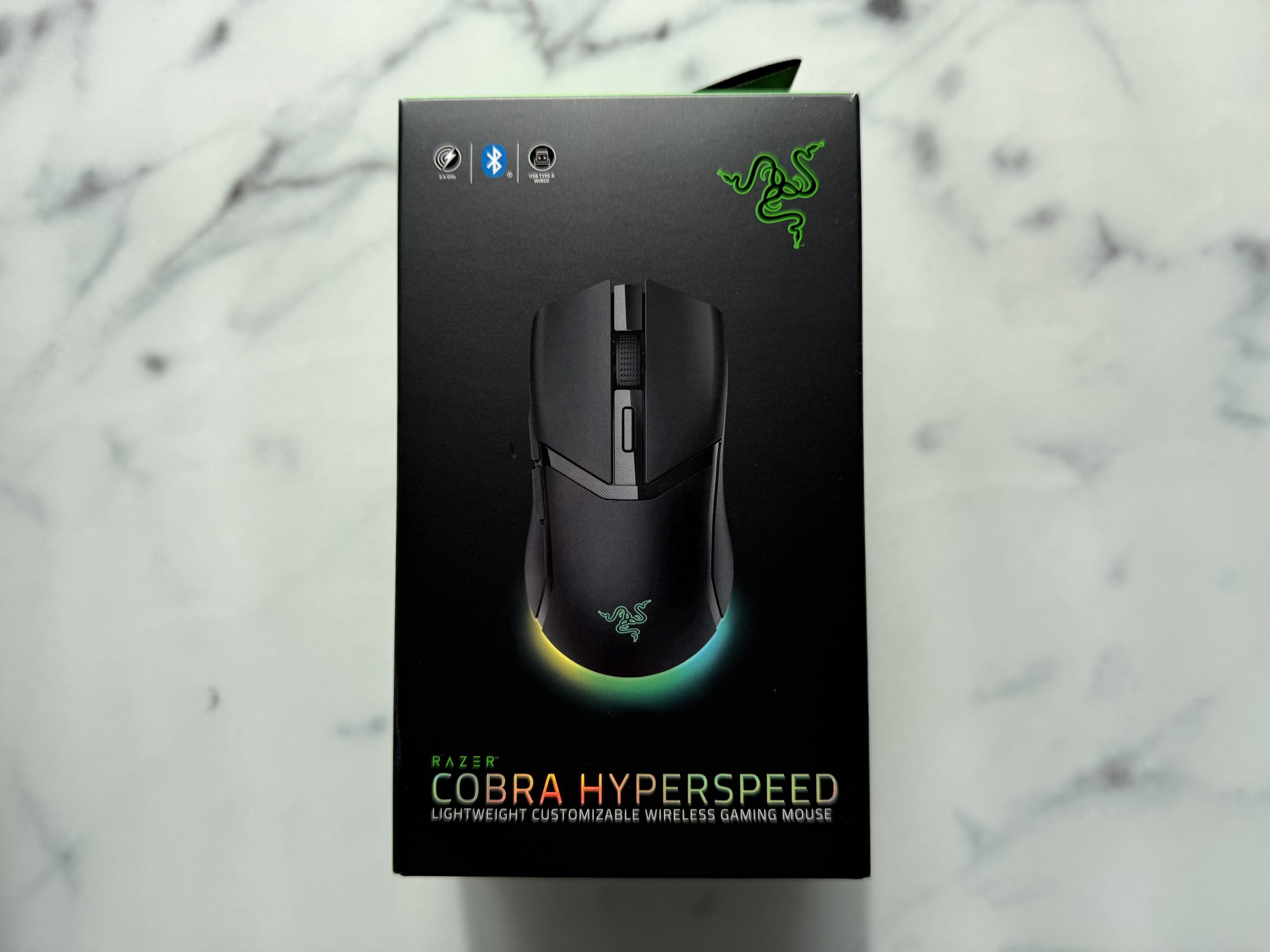 The unboxing experience immediately establishes the Cobra Hyperspeed as a product true to Razer’s brand ethos. Within the package, we find the mouse itself, a Razer Hyperspeed Wireless dongle, a USB dongle adapter, and a USB-A to USB-C cable. The meticulous packaging and thoughtful inclusion of accessories align with expectations for a premium peripheral.