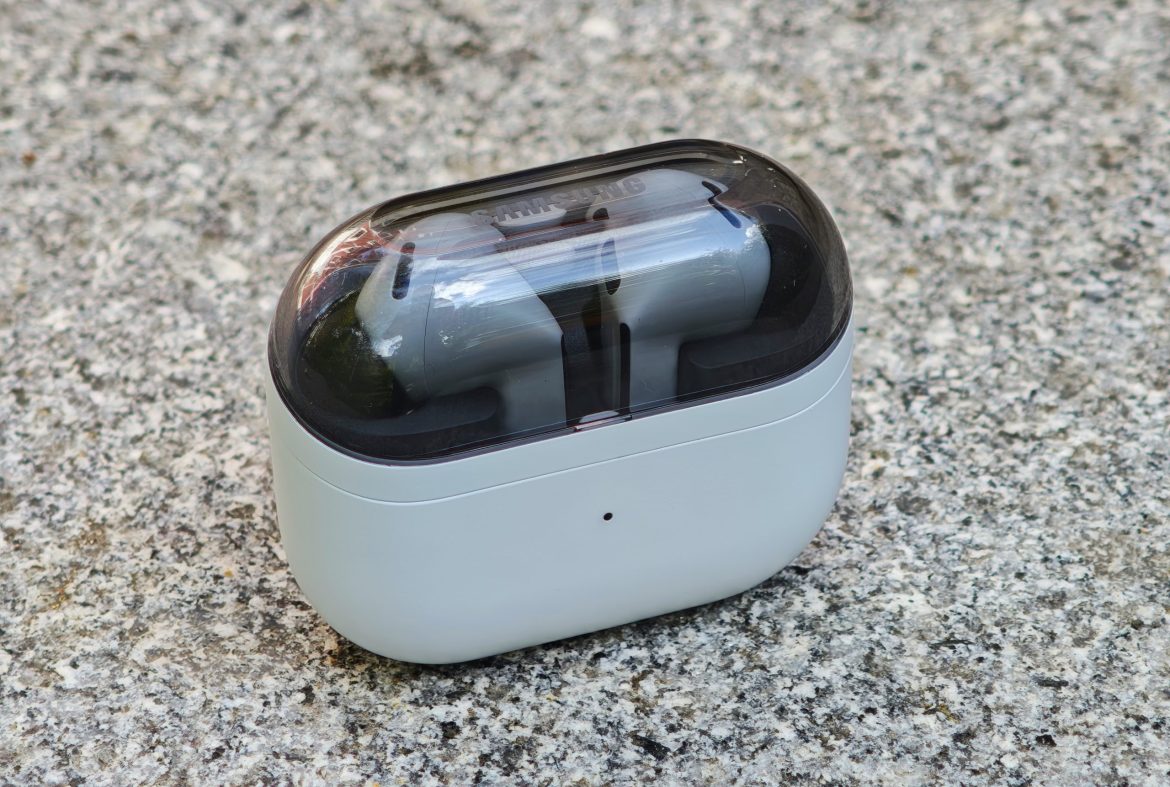 The design is a traditional in-ear design with replaceable silicone tips. This not only guarantees good passive noise isolation, which is the foundation for effective noise cancellation, but also ensures deep and consistent bass. Unfortunately, Samsung only includes two extra sizes in addition to those already fitted. The new “blade” design, a small angular “stem” that sticks out, not only looks perfectly fine but also acts as an anchor point that ensures the earbuds sit securely and comfortably, even for long periods. They also have an IP54 rating, so you don’t have to worry about using them during a sweaty workout or in light rain.