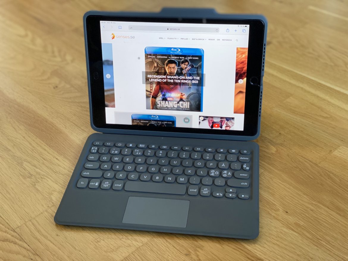 The Zagg Pro Keys comprises two main components: the keyboard itself, featuring a magnetic, foldable section, and a rubberized case designed to protect your iPad (available for the standard 10.2″ iPad and 10.9″/11″ Pro models). This case is designed to withstand drops from up to two meters (assuming it doesn’t land screen-down). The rubber holder also includes a dedicated slot for an Apple Pencil (or a compatible third-party stylus, such as ZAGG’s own Pro Stylus). The design is fairly standard for iPad cases with foldable covers. While ZAGG’s website may suggest greater flexibility in adjusting the iPad’s tilt and height for a more laptop-like viewing experience, we were unable to achieve this in practice, and the manual provides no specific instructions. The cover folds to provide an approximate 45-degree angle, which works well for most applications. The keys are comfortable and responsive, with optional backlighting (which will impact battery life). The touchpad functions as expected (indicated by a small, gray circle), proving useful for point-and-click interactions in applications like Tales of Monkey Island (though direct touchscreen input may be faster for certain tasks). As is typical, the keyboard is slightly smaller than a standard laptop keyboard, but not significantly so (see image below). A notable feature is the ability to connect the Pro Keys to two devices simultaneously via Bluetooth, allowing for quick switching between inputs. This effectively provides a compact and fully functional external keyboard and mouse solution for computers (both desktop and laptop, if needed).