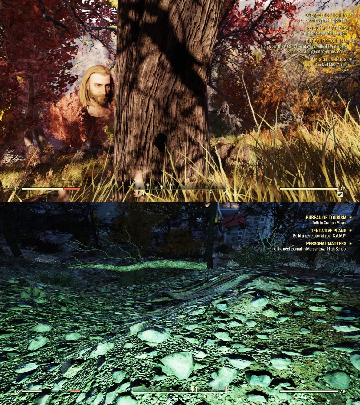 När jag gjorde videon ovan, om mina första intryck, så var det verkligen så. Det var första gången jag spelade Fallout 76 och då jag var entusiastisk så fanns det ändå något som gnagde i mig. ”Var är alla människor?” ”Varför vaknar jag ensam och övergiven med endast en handfull robotar som sällskap?”. ”Hur kan man ha missat den största händelsen i sitt liv: att få komma ut ur valvet?” ”Aja ok, det blir nog bättre” tänker jag och kommer ut och blir direkt anfallen av ett gäng kinesiska robotar som tydligen hatar mig. Jag gör mig av med dem och följer spåret på mitt första uppdrag. Världen är vacker, med ovanligt snygga miljöer och då det här spelet utspelar sig före alla andra så har världen inte riktigt hunnit blivit den gråa och hemska värld man är van med från Fallout-serien. Jag kommer fram och förväntar mig att mötas av The Overseer med öppna armar, men där finns ingen förutom hennes övergivna läger och ett nytt röstmeddelande som ger mig en ny plats. Lite prylar och en liten tutorial och inget mer. Jag ser en annan spelare som lika förvirrad ut som jag och sen är det tomt. Ekande tomt. Var fan finns alla människor?!