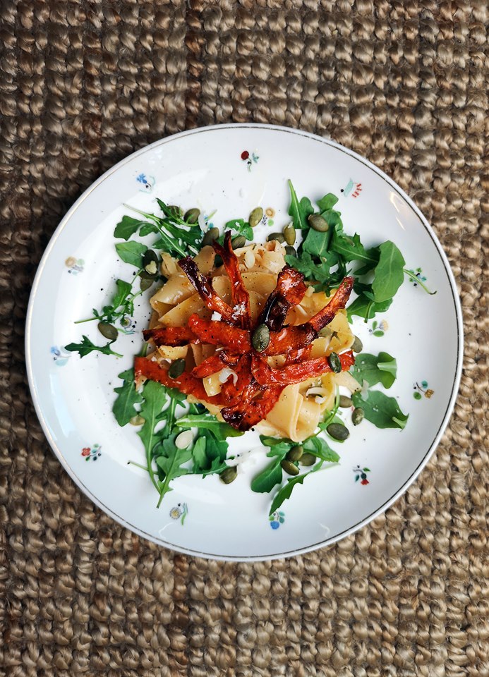 - Pasta av valfri sort, jag valde pappardelle. Räkna på cirka 90 gram okokt pasta per person.