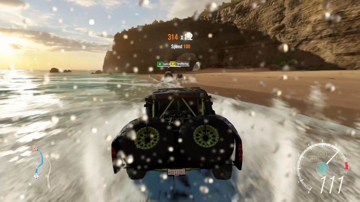 Kontrollerna är precis som sist väldigt fina och går snabbt att få in flowet på. Bilarna svarar ungefär så som man förväntar sig att en riktig bil gör i olika situationer och precis som innan så kan du med berått mod testa all möjlig terräng och bränna loss utan tanke på skador eller absolut diskbänksrealism (en sportbil gör sig nog annars inte perfekt att bränna runt på en byggarbetsplats med). Du kan hitta bilar i övergivna lador, plocka skyltar, upptäcka vägar och utmana rivaler och vänners ”spöken”, som besöker din spelvärld. Precis som i tidigare Horizon-spel alltså.